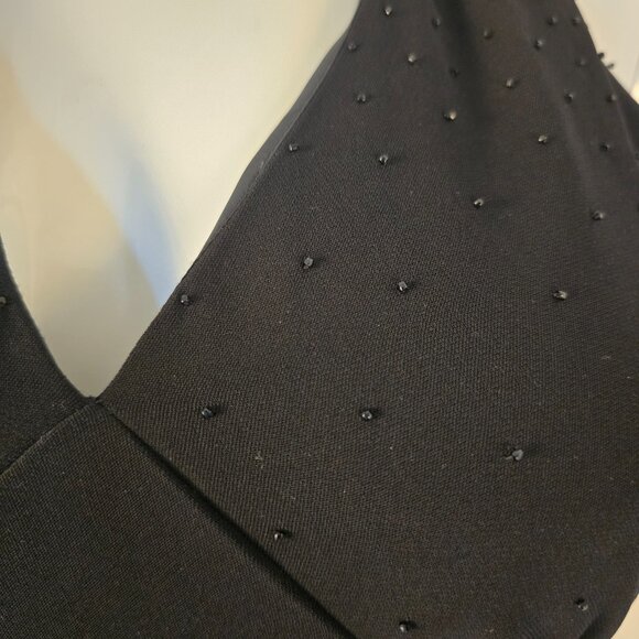 Size - 16 Evan Picone Little Black Dress in excellent condition. Seed bead detail on midriff and bottom hem. Floor length and lined. Polyester.