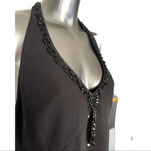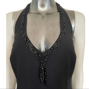 Evan Picone Black Halter Dress Bead Detail High Low Dress Back Size 14