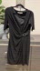 Chic black midi dress with a draped front. Features a stylish buckle accent. Perfect for versatile styling.
