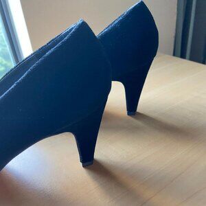 Gorgeous black velvet and satin 3 inch heel pumps. Leather soles, made in Spain, original box and extra heel tips. Also, detachable rhinestone decorative clips for added beauty.