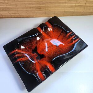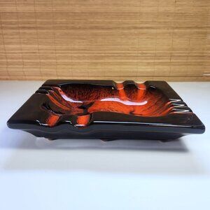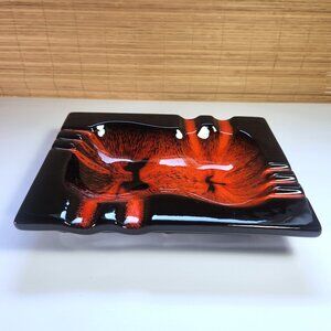 Evangeline Ceramic Ashtray Mid Century Modern Vintage Large Canada Black Orange