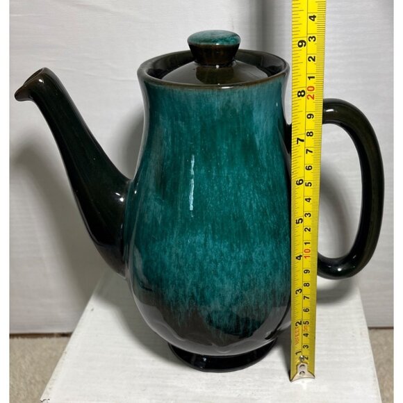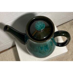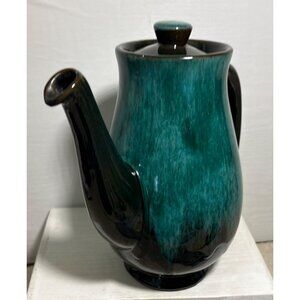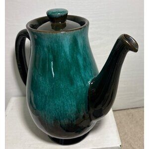 Evangeline Pottery Green Blk Drip Glaze Ceramic Teapot 966 Canada 9" Vintage MCM