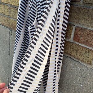 Statement pants from luxury resort wear brand Evarae. Features bold black and white diagonal stripes and a relaxed fit that flows beautifully. Perfect for vacation, beach outings, or summer nights. Size S.