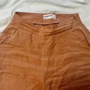 High waisted pants with side pockets and long front darts. Made in Montreal by Eve Gravel. 100% linen. Gorgeous fit.