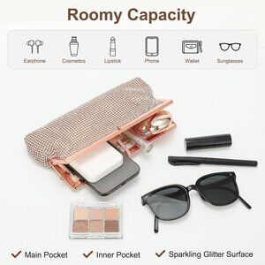[Capable]: The Clutch Purse Size(LxWxH) is 22.5 x 3.5 x 12.5 cm / 8.86 x 1.38 x 4.92 inches, lightweight at only 0.5 pound. The Clutch purse material is PU fabric and crystal rhinestone, Its color is Champagne Gold, Shoulder strap length is 120 cm / 47 inch. The evening bag is enough to hold the most needed items, such as makeup brushes, mobile phones, cards, money, car keys, and small wallets, ensuring you are prepared for any occasion.