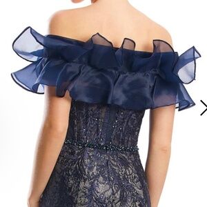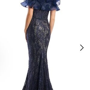 Evening gown lace & beaded - navy-size 10 and worn only once