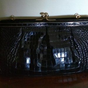 Black alligator evening bag with gold plated chain. Made in Italy by Serapian.