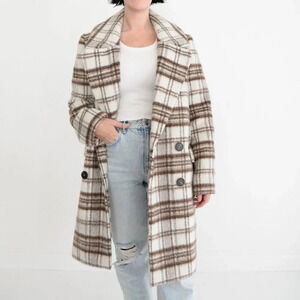 Ever New Melbourne Mellisa Check Brown & Cream Double Breasted Wool Coat 10