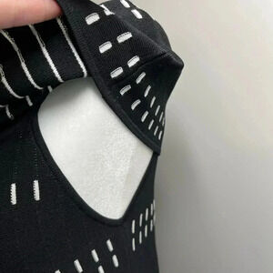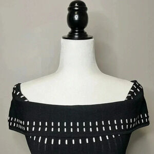 NWOT. Fitted style. Pleated bottom. Odd shoulder. Black & white pattern. Stretchy material. Lay Flat Measurements: Length 34” Width 16”