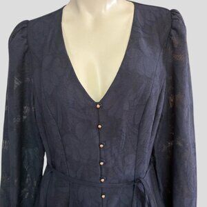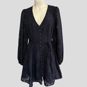 Ever New Navy Carina Button-Front V-Neck Lace A-Line Mini Dress
