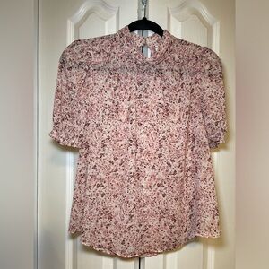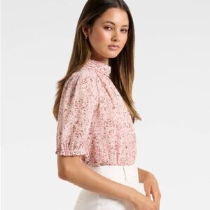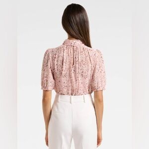 Ever New - Spring Casual Vintage-Inspired Pink Floral Blouse with High Neck