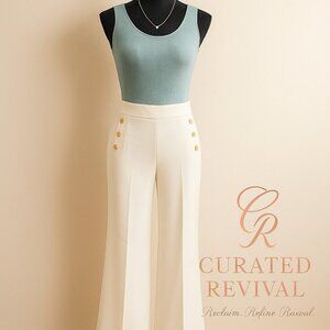 Ever New Wide-Leg White Pants w/ Gold Button Detail Size 4 | Curated Revival