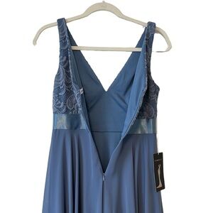 The Women's Deep V Neck A Line Lace Chiffon Cocktail Dress is a gorgeous dress perfect for formal occasions such as weddings and parties. The dress features delicate lace and a flowy chiffon A-line skirt, and the deep V-neck adds a touch of allure. The dress comes just below the knee in length and is new with tags!