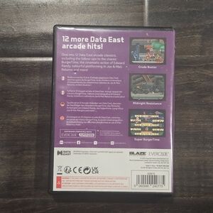 This Evercade Data East Arcade 2 cartridge comes complete in box with the original case, artwork, and full-color manual. Featuring 12 classic arcade titles including Crude Buster, Midnight Resistance, and Super BurgerTime, this collection is a standout for retro enthusiasts. The cartridge has been fully tested and is in excellent working condition, while the physical components show only minimal signs of shelf wear. It is a perfect addition for any collector looking to expand their library with high-quality, authentic arcade ports on a modern handheld or console.