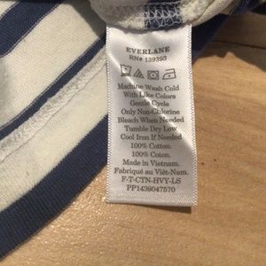 Casual long-sleeve top with blue and white stripes. Comfortable and stylish.