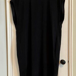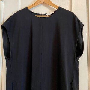 The Japanese GoWeave Cocoon dress from Everlane. Smooth black twill fabric in a modern shape with a timeless cut and a below-the-knee length. Side pockets and back zip entry. Preowned in good condition with no stains or tears. Wrinkle-resistant, drapey Japanese GoWeave fabric that is cool to the touch. Did I mention it has pockets!?