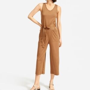 Everlane Luxe Cotton Jumpsuit Wide Leg Crop with Front Pockets Size Small. Toffee brown. Missing belt. Excellent condition.