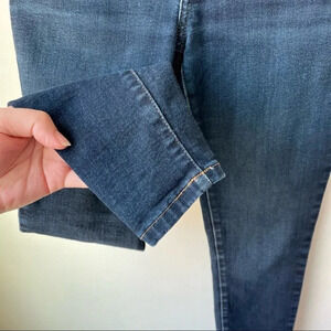 Everlane Mid-Rise Skinny Ankle Jean. Size 26. Dark wash. Some fading on the leather patch but otherwise excellent condition.