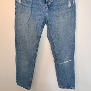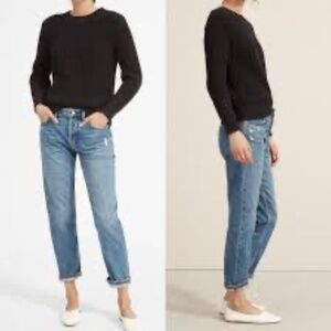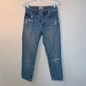 Everlane O-S Boy Friend Distressed Cropped Blue Jeans 25