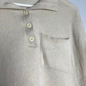 Everlane ReCashmere Button Mockneck Cashmere Blend Henley Cropped Sweater