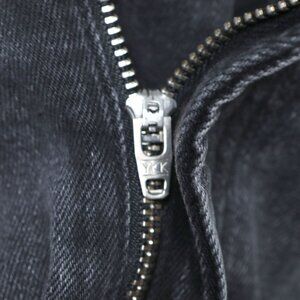 The Everlane Straight Jeans in a faded black color are a stylish and casual choice for everyday wear. Made with thicker cotton blended fabric, these jeans offer both comfort and durability. They feature a YKK zipper fly, which is known for its quality and ease of use. The rivets add a classic touch, making these jeans a versatile addition to any wardrobe. Perfect for both relaxed days and more polished looks, these jeans are designed to fit well and look great.
