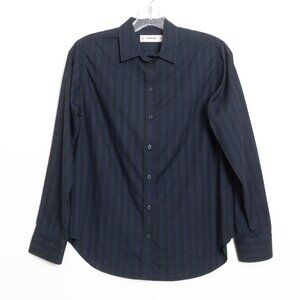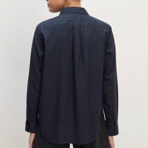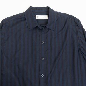 Everlane The Must-Have Shirt in Silky Cotton Navy Black Striped Relaxed Fit