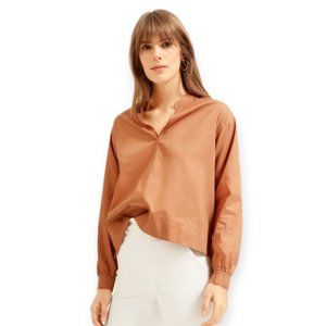Everlane The Silky Cotton Split-Neck Blouse in 0 | 100% Cotton | Spring | Office