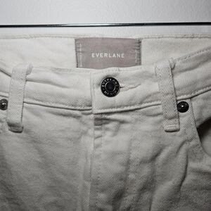 Classic white Everlane cropped jeans with a frayed hem.