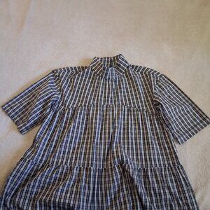 Everlane Women's Size XS Blue Plaid Tiered Mock Neck Cotton Modest Midi Dress