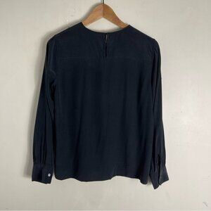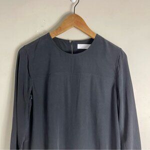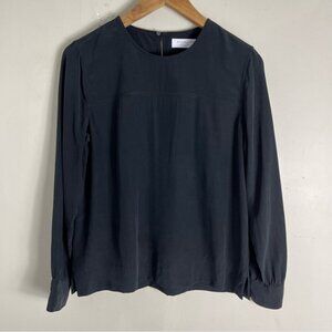 Everlane scoop neck long sleeve 100% Silk black blouse size 4 closet capsule