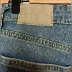 Slim straight leg. Slim fit through hips and thigh. Sits high at waist. Rise: 11 3/4". Leg opening: 14" (Size 28)