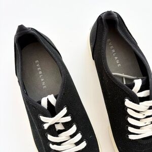 The Everlane Forever Sneaker is a minimal, sustainable canvas sneaker — it has a 50/50 recycled-and-virgin cotton upper, natural rubber outsole, recycled polyester laces, and is machine washable.