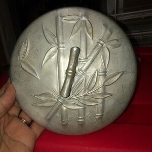 The Everlast Silver Casserole Dish cover is a stunning piece of kitchen decorative ware , perfect for serving. Its sleek silver finish adds a touch of elegance to any kitchen setting. Designed for durability and style, this cookware cover is a must-have for culinary enthusiasts. Decorative bamboo style, this aluminum piece is made to place your cooked food in your casserole dish , cover and serve, adding a touch of class to any table. Do not cook in this, used condition , check the pics.