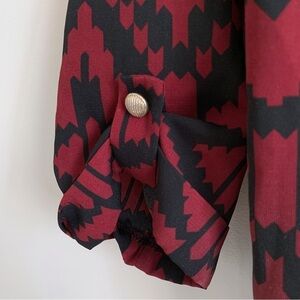 Purchased from Modcloth Gold buttons on sleeves Loose fit 3/4 length sleeves Pit to pit = 18”