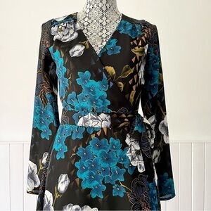 Everly Black Floral Long Sleeve Wrap Dress Size M