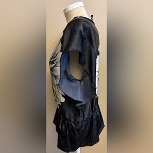 Everly Black White Floral Blouse Short Sleeve Satiny Blouse Top women's size L