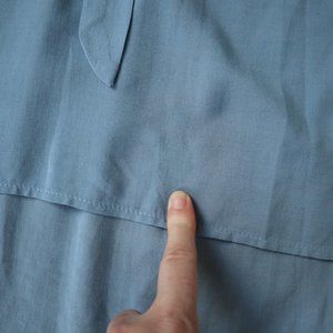 This soft & flowy blouse is a lovely lightweight fabric (tag is too faded to read material).