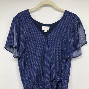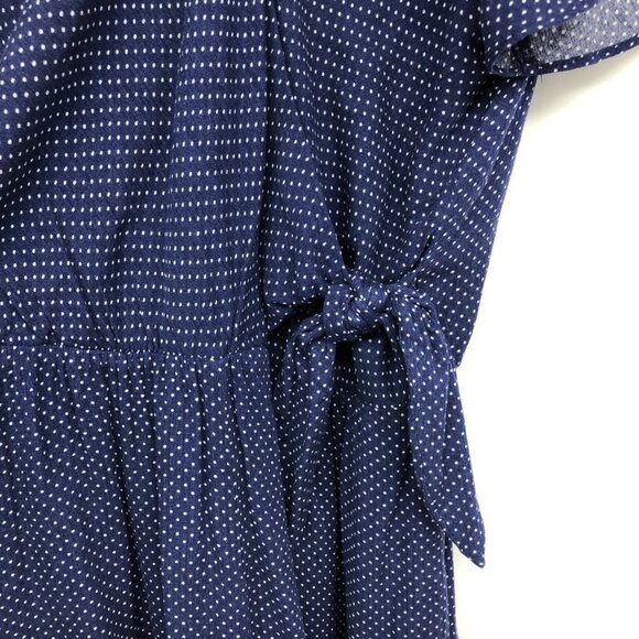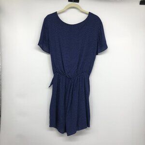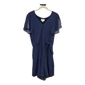 Everly Navy blue polka dot Golden Days Surplice V-neck side knot Romper size L