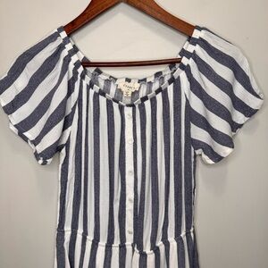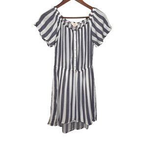 Everly Striped Blue & White Off the Shoulder Rayon Dress Size Medium