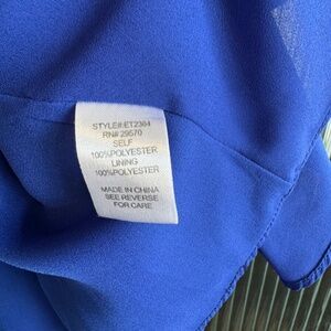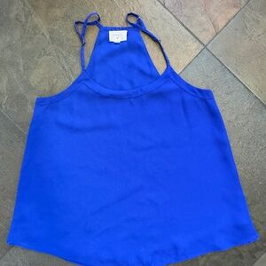 Everly royal blue tank with adjustable straps. Detailing along the top give the illusion of see through but tank is lined.