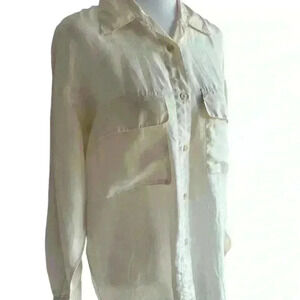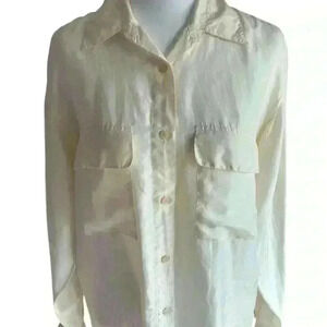 Evidence Women’s 100% Silk Button Up Blouse Two Front Button Up Pockets Size S