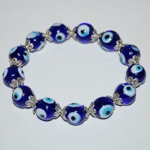 Evil Eye Bracelet,Large 10mm Evil Eye Beads,Blue Glass Evil Eye Beads,Prayer,Men,Women,Protection,Good Luck Bracelet