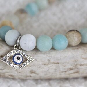 Evil Eye Charm Amazonite Frosted Gemstone Chakra Balancing Stretchy Energy Brace
