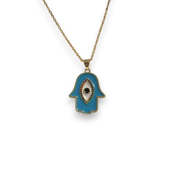 Evil Eye Hamsa Hand Multi Colour Cubic Zirconia Enamel Charm Gift Necklace