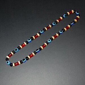 Evil Eye Necklace,Evil Eye Wood Necklace,Fatima Necklace,Good Luck Necklace