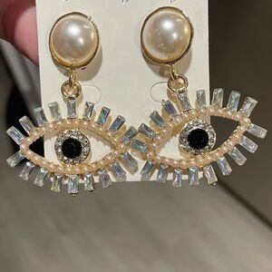 pearl, evileye, shiny, drop, earrings, studs, dangly, dangling, oversized, sparkling, rhinestone, colour