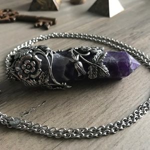 Evil Pawn Jewelry Amethyst Floral Wrap Large Necklace Wand Altar