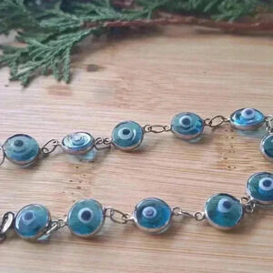 Evil eye Bracelet with Blue Beads and Silver Connectors