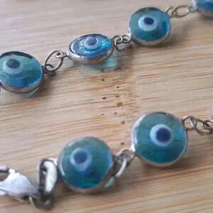 delicate sterling silver blue evil eye bracelet. gently used . no defects. 8.5 inch