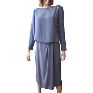 Evina Ruth Ullmann Dress Cowl back Lavender Beaded Vintage 80s Union Label ILGWU